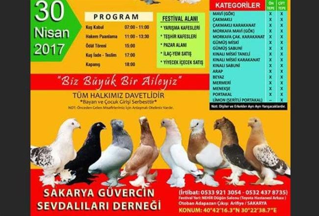 Sakarya Güvercin Sevdalıları Derneği'nin düzenlediği, 1'nci Tepeli Kostüm Güvercinleri Festivali 30 Nisan Pazar günü gerçekleşmiştir.