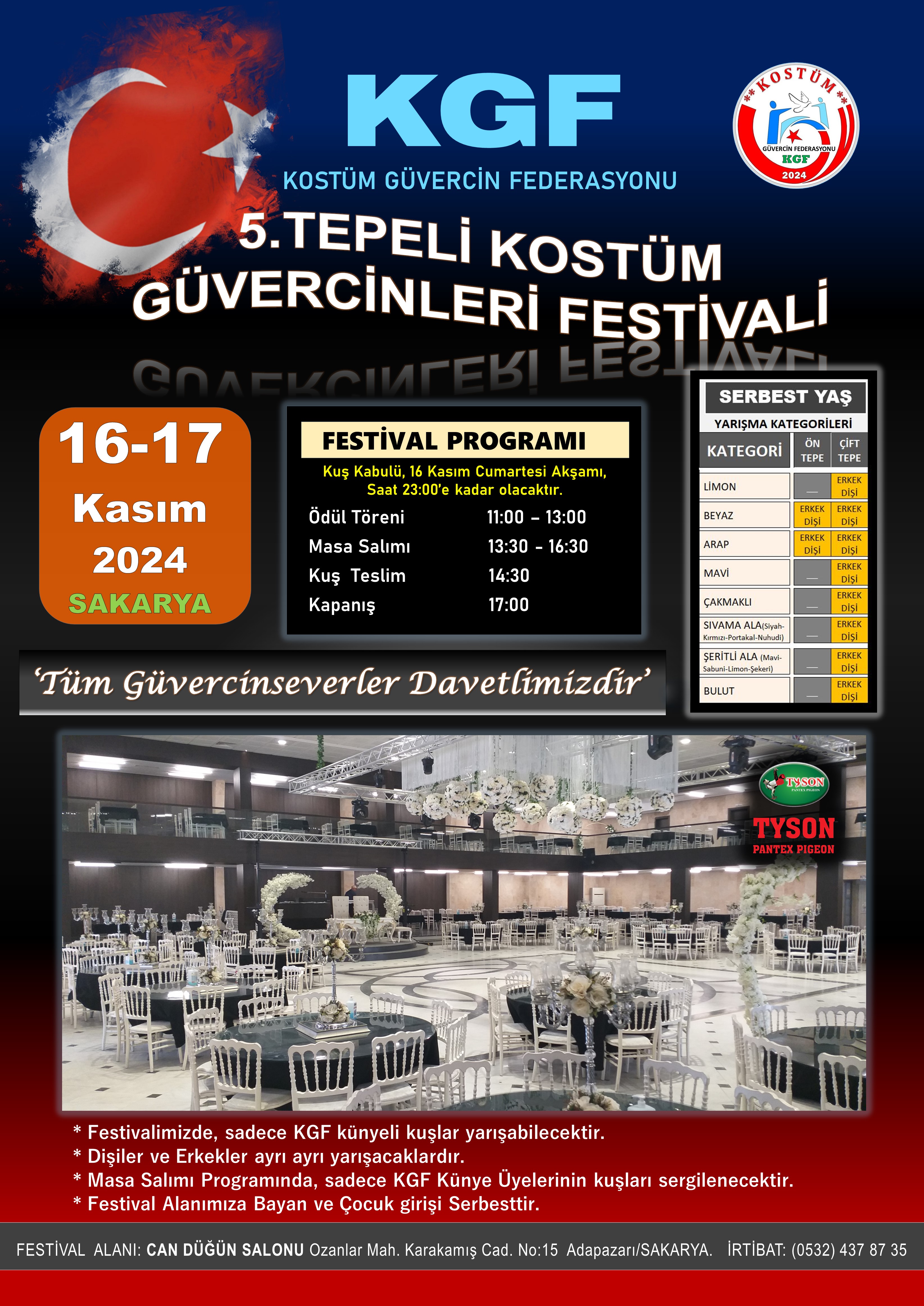 | 7 | 5.KGF Tepeli Kostüm Güvercinleri Festivali 2024 | 18 | 167 | 14 | İncele |