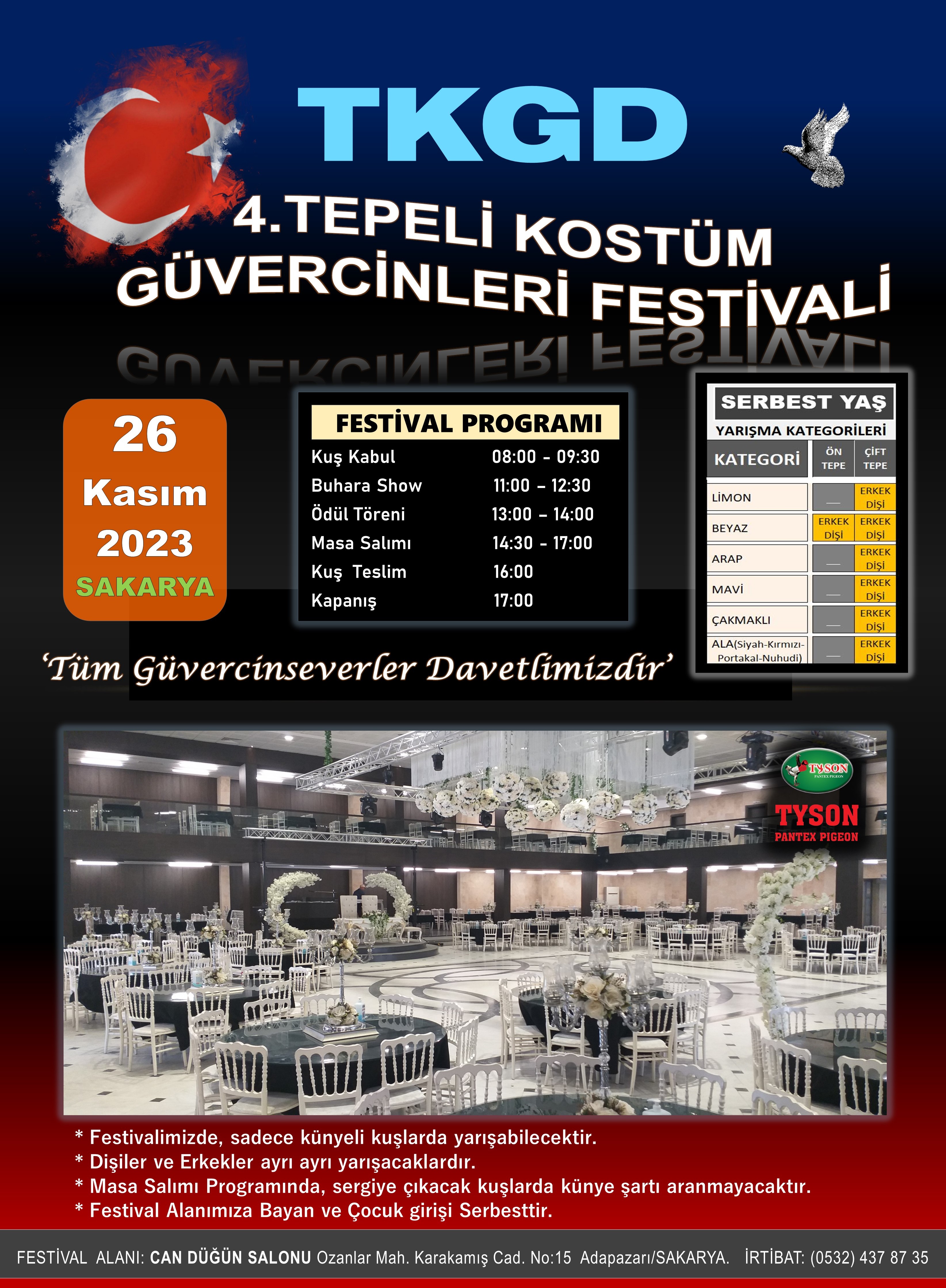 | 6 | 4.TKGD Tepeli Kostüm Güvercinleri Festivali 2023 | 12 | 77 | 12 | İncele |